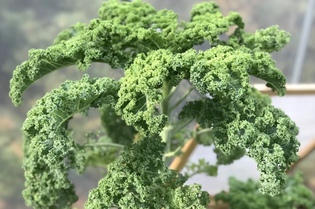 Grønnkål er en av grønnsakene vi forsøker å ha tilgang på hele året, men vi klarer det aldri helt. De siste krusete bladene går som regel i panna senvinters. Heldigvis har vi allerede grønnkålfrø ute i jorden da, men ikke direktesådd på friland slik som salaten og spinaten over. Kål krever litt mer stell. Grønnkål er enkel å dyrke sammenliknet med mye annen kål, men den vil gjerne pottes om to–tre ganger, slik at den vokser i passe store potter med næringsrik jord hele veien. For store potter kan gjøre at stilkene til små grønnkålplanter råtner. Det blir for mye fuktig jord rundt «plantehalsen» rett og slett.