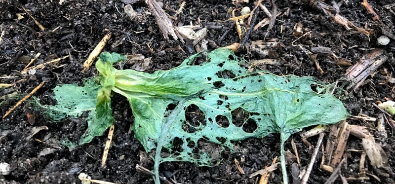 Vi tok feil. Da vi lettet på dekke, lokk og fiberduk, kunne vi raskt slå fast at de aller fleste plantene hadde bukket under. Frosset ihjel og klappet sammen. De var et ganske sørgelig syn: