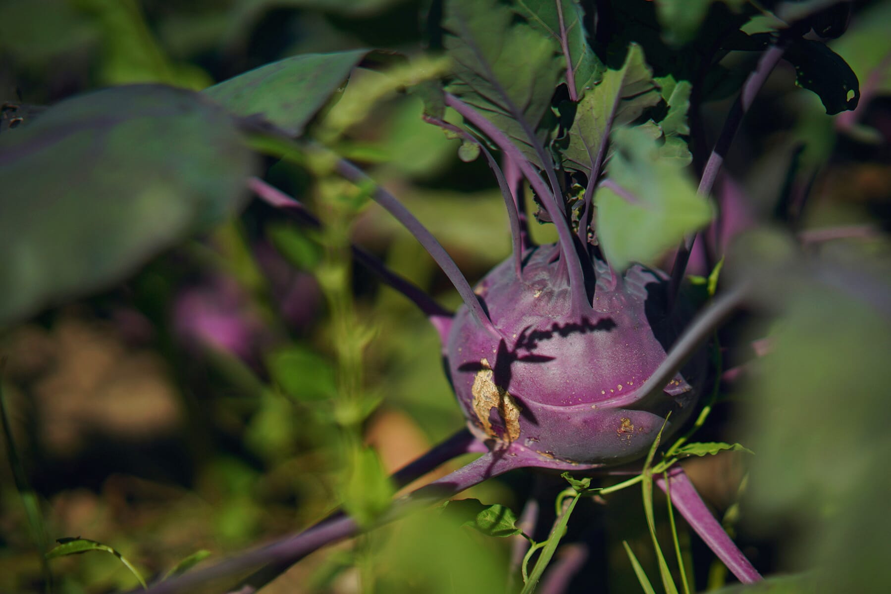 Knutekål kan være både lys grønn og vakker dyplilla. Vi dyrker som regel lilla varianter, rett og slett fordi de er så utrolig fine å se på. Smaken minner om en slags mild kålrot blandet med nepe – og med en knasende epleaktig sprøhet.