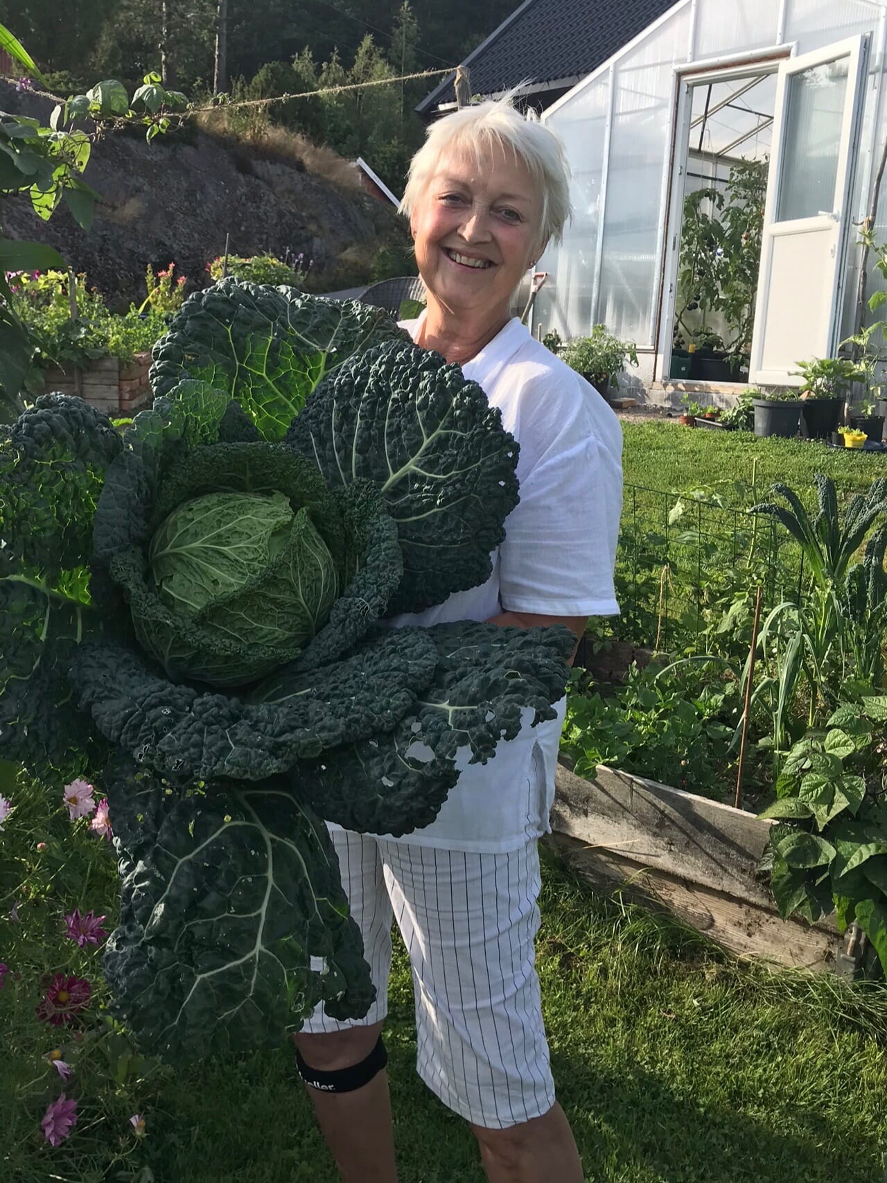 – Jeg har et par jordfabrikker i garasjen på vinteren. Jeg spar ut et par sekker med jord fra drivhuset som jeg bruker til strø og legger lagvis i murerdunker, de samme som om sommeren tjener til dyrkingskar for tomater. Hele våren og sommeren spar jeg ned på ledige steder, og planter noe nytt oppå med en gang (jeg har som regel noen potter som er klare for utplanting). Om høsten graver jeg ned i alle tomme bed, legger over løv eller plenklipp, og lar de godgjøre seg helt til våren.