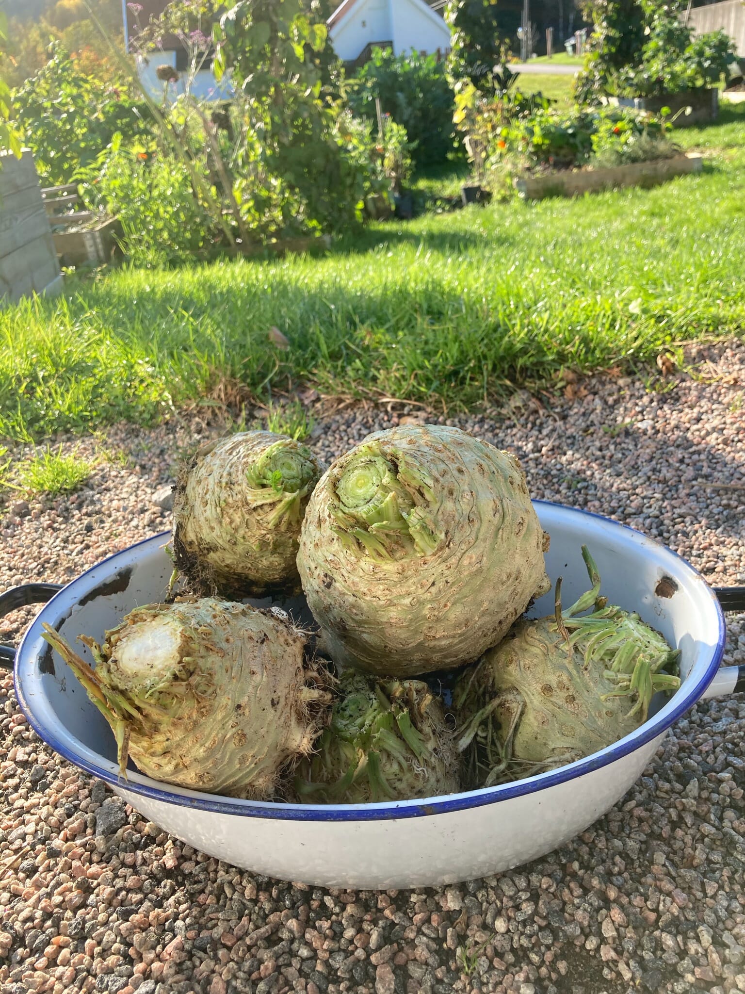 – I kjøkkenhagen putter jeg bokashi i alle bed. Der det er mest bokashikompost planter jeg ut rotselleri og gresskar, da disse er ekstra næringskrevende.