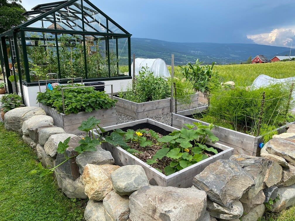 – Nå som alle bed er fulle av grønnsaker og blomster har jeg ikke noe godt sted å oppbevare bokashien min. Vanligvis graver jeg den rett ned, men nå har jeg noen måneder foran meg hvor jeg må finne en annen løsning. Foreløpig oppbevarer jeg den i store plastkasser som jeg også brukte i vinter, men jeg planlegger å lage en ordentlig jordfabrikk i løpet av sommeren for å ha god jord klar til neste vår.