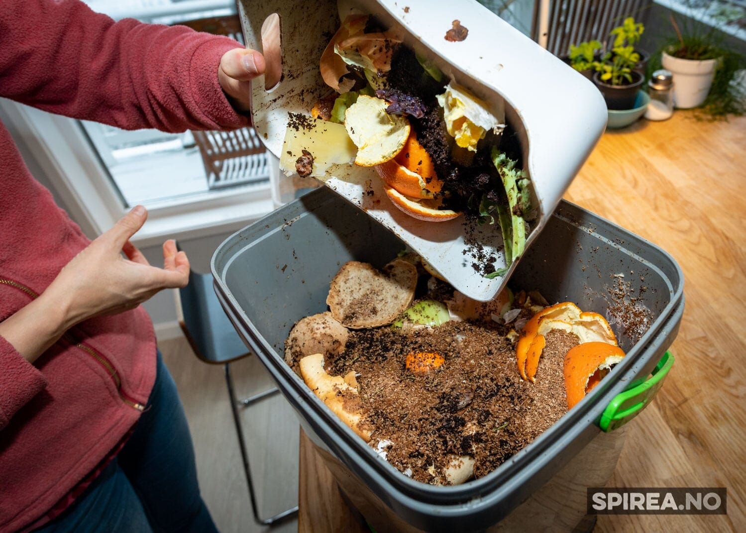 – Det er enklere enn du tror, spesielt hvis du har lite matavfall. Og det lukter ikke! Selv om du må kjøpe litt utstyr og strø, sparer du det fort inn fordi du trenger å kjøpe mindre jord og gjødsel.