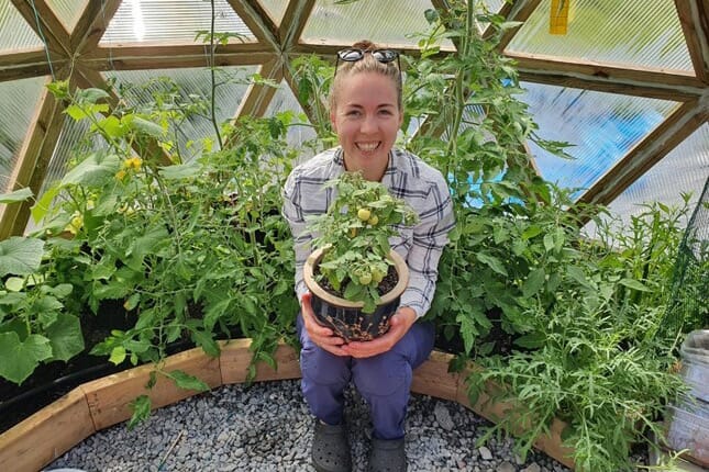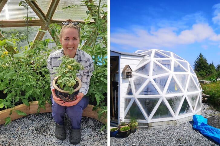 Tina har bygget seg en fantastisk drivhusdom og dyrker mange spennende vekster i en fantastisk setting. Bokashi hjelper plantene hennes med å vokse seg frodige.