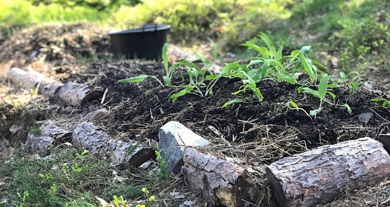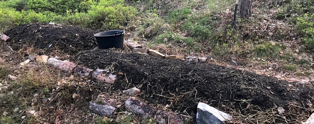 Det går mye i pallekarmer i kjøkkenhagen hos oss, men av og til er det herlig å anlegge et raust og næringsrikt bed på friland. Da lager vi nye bed gravefritt med bokashi og annet organisk materiale vi har tilgjengelig; «innholdet» kan variere litt med årstidene. Vi velger gravefritt ikke primært fordi vi ikke liker å grave, men fordi vi bor på fjelltomt, med bare et tynt lag skogsjord over fjellknausene. Ikke mye å grave i. Altså må vi lage den jorden vi skal dyrke i, og det gjør vi i høyden.