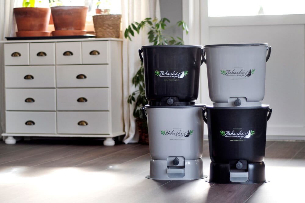 Kjøper du en startpakke fra Bokashi Norge får du alt du trenger for å lage jord av matavfallet ditt. Startpakkene finnes i flere farger slik at de passer på alle kjøkken.