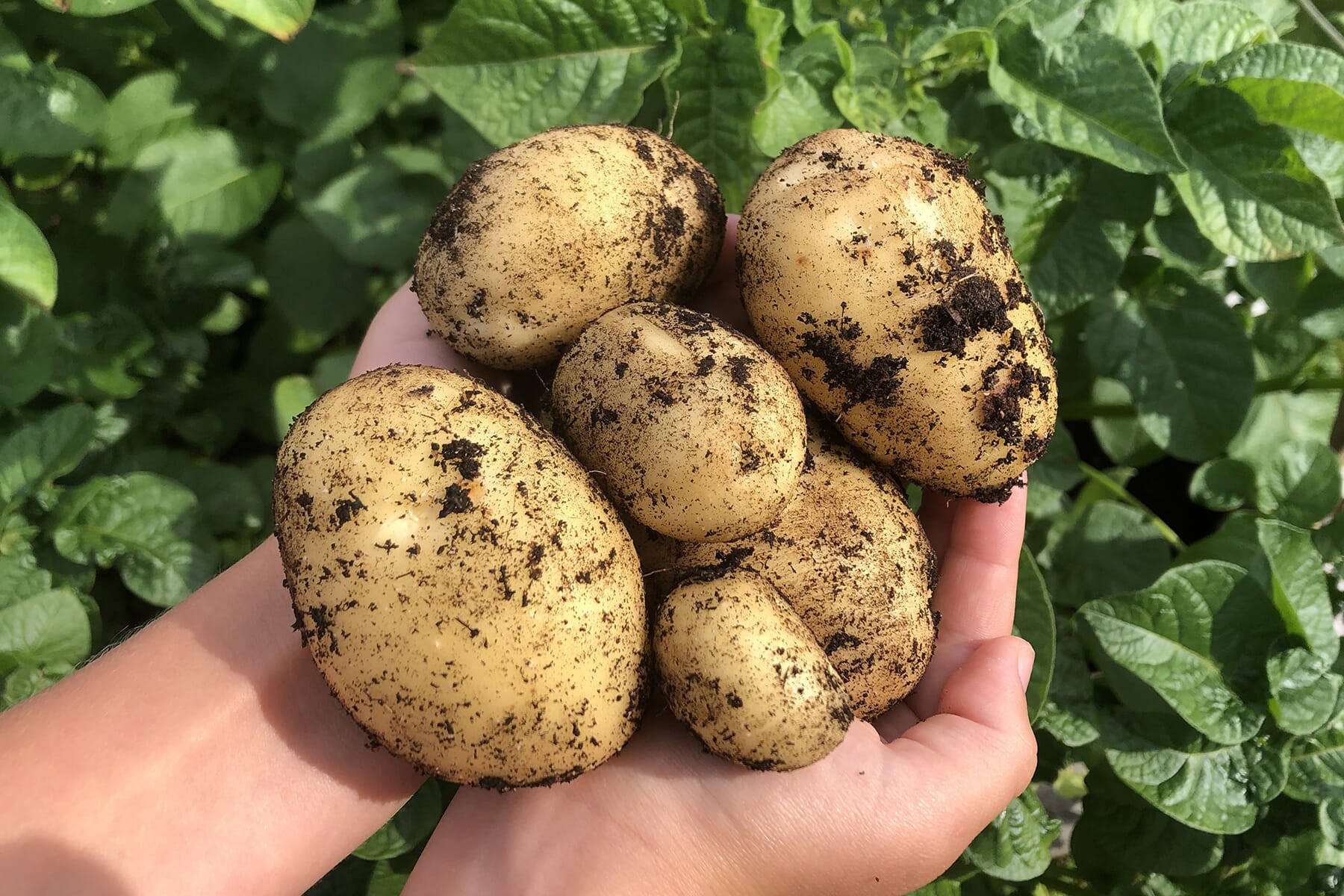 • Potet: Gudene vet hvor mange mennesker den fantastiske poteten har reddet fra sultedøden oppigjennom årene! Poteten er både mettende og næringsrik, enkel å lagre, og man kan lage utrolig mye forskjellig med den. Kok den, stek den, mos den, tørk den, fritér den, bak med den... Poteten er faktisk den grønnsaken som gir mest mulig mat (altså kalorier) på minst mulig plass. En åpenbar plante å prioritere hvis du ønsker å bli hakket mer selvforsynt. Sett gjerne også flere sorter, for eksempel én tidlig som du kan spise utover sommeren og høsten, og én sen du kan lagre. Én eneste potet kan bli til 1 kilo nye poteter. Skal du sette potet så kjøp ALLTID sertifiserte settepoteter. Poteten er nemlig utsatt for virus som er fryktelig vanskelig å bli kvitt. Derfor er det strenge lover og regler for dette – og det er viktig at vi tar dem seriøst.
