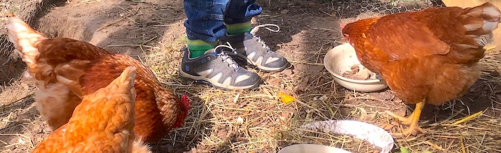 Både Sonja & Andreas og Anette har høner i hagen. Andreas er vokst opp på gård og har hatt høner hele livet, han er dessuten bybonde i Oslo på heltid og har høner både på Losæter i Bjørvika og hjemme på Nesodden (og dobbelt opp hjemme på vinteren). Klukk, klukk.