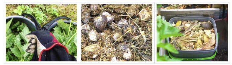 En varmbenk i februar, tre høner på terrassen og bokashi hele året gir nesten alt vi trenger av gjødsel i bokashihagen. Med tang fra havet, gressklipp fra gode naboer og nesler fra veikanten blir dietten komplett både for plante- og jordlivet.