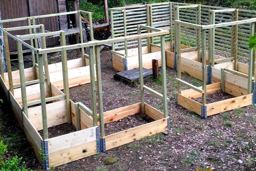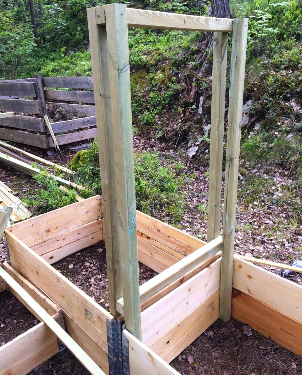 Når reisverket står ferdig og lekterne er kappet til i riktig størrelse, går det fort. Selve spikringen av lektere gikk virkelig unna. Hvis ikke snekkeren og gartneren er samme person, kan sistnevnte også begynne å fylle jord og bokashi i kassene, og plante eller så i dem, mens siste finish pågår utvendig.