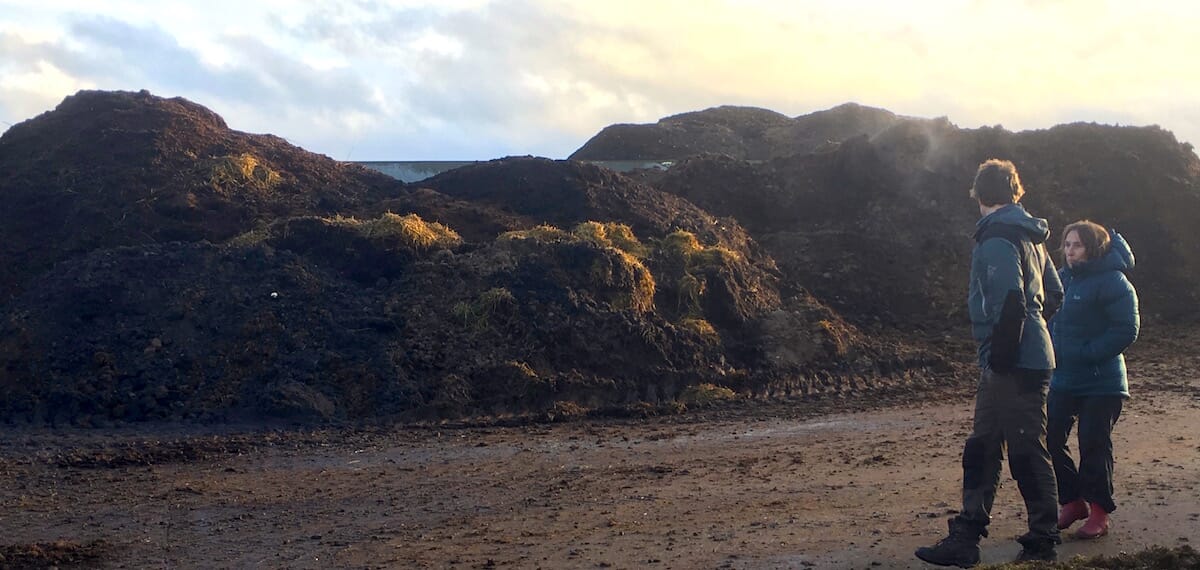 Ferdig blandet bokashimateriale, klart til fermentering! Det tar tid å blande 1500 kubikk materiale. Men når alt er klart, skal bonden presse det godt sammen (han kjører over det med gravemaskin!) og trekke plast tett, tett over hele gjødsellageret, fylt med bokashi.