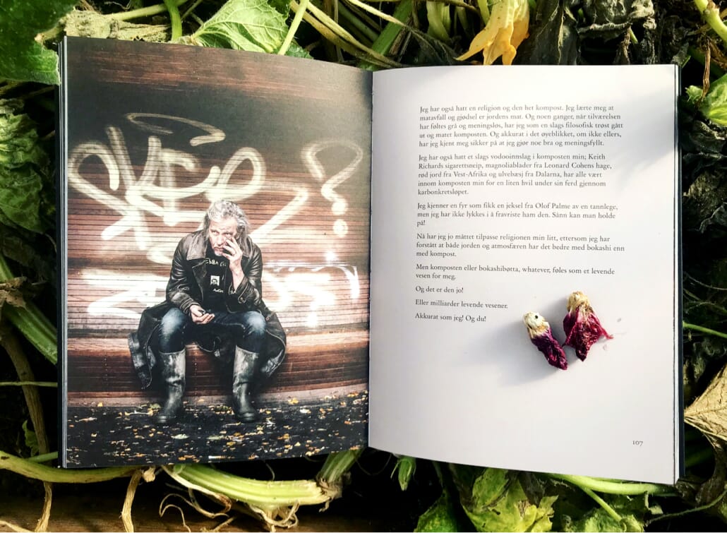 Låtskriveren, artisten, samtidskommentatoren og bokashimannen Stefan Sundström har hatt en stor tilhengerskare i Sverige gjennom flere tiår, både på musikkscenen og som hage- og bokashientusiast. Han har også hatt en noe mindre fanbase i Norge lenge. Bokashi Norges Anette var blant dem som brukte et antall studielånskroner på konsertbilletter og øl med Sundström live på Oslos konsertscener på nittitallet. Siden da har både Sundström og vi begynt å interessere oss for dyrking, bokashi og klima. Og sammenhengene mellom dem. Nå har Sundström skrevet bok om temaet, sammen med fotograf Jeanette Andersson. Og for en feiende flott bok det har blitt! Anette fikk oppdraget med å oversette den til norsk, og nå selger vi den norske utgaven med bokashi og biokull i nettbutikken. Så fett å møte Sundström igjen – i kjøkkenhagen, på en måte.