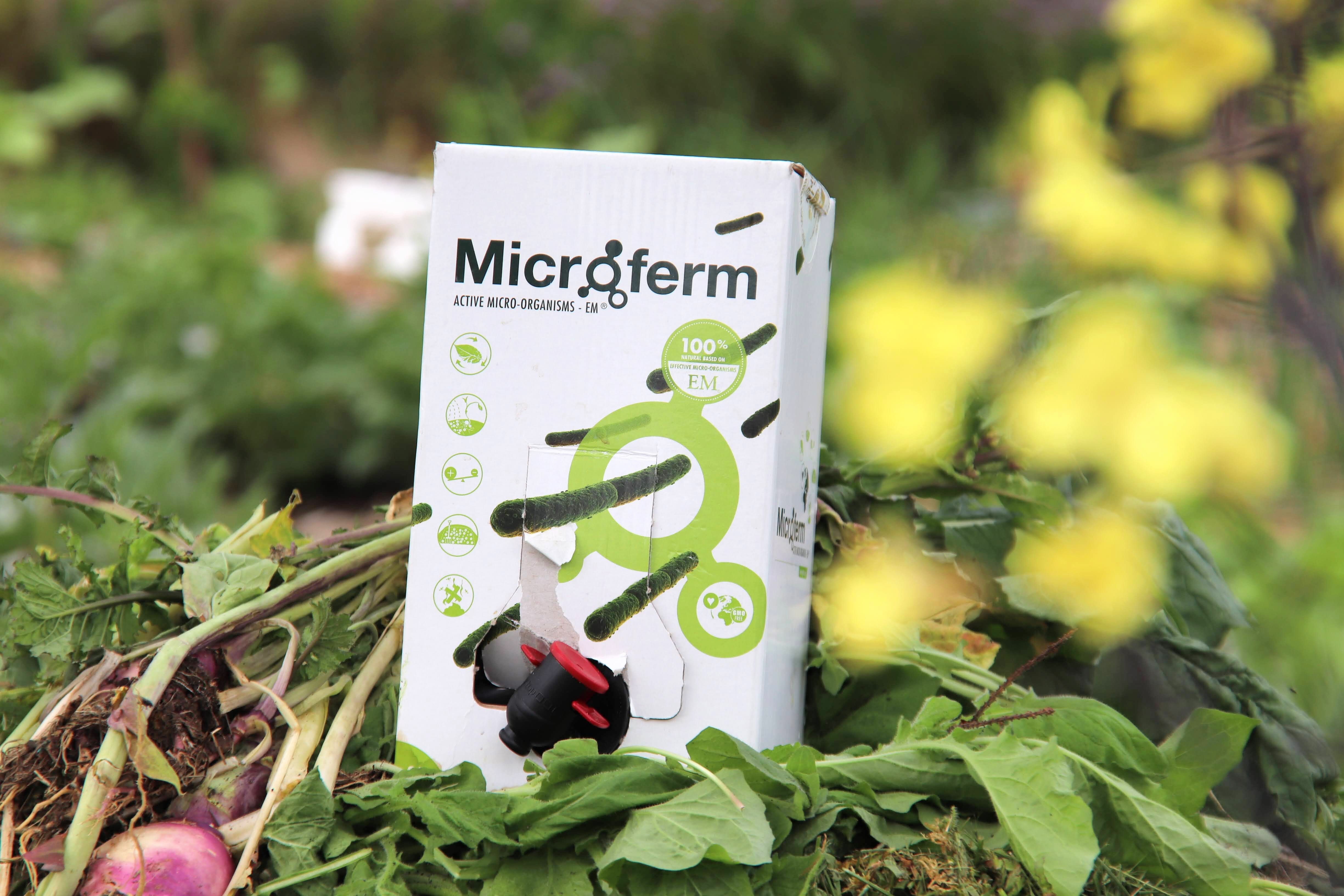 Kompostering: Komposter hageavfallet raskere ved hjelp av Microferm. Legg hageavfallet i lufttett sekk. Bland ut Microferm med lunkent vann. Bland Microferm 1:100. Vannes over hageavfallet. Blandingen må brukes innen ett døgn. Fermenteres 6-8 uker. 10 liter vann + 1 dl Microferm holder til 10 kvadratmeter hageavfall. Les mer om kompostering av hageavfall.