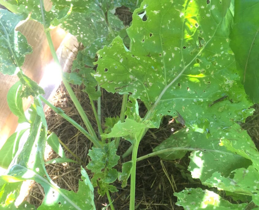 I tillegg ble både spinat, pastinakk og mangold (som ikke er korsblomstrede arter) hardt angrepet når de stod tett på henholdsvis brønnkarse, kålrot og ruccola hos oss. Vi endte opp med å rigge om kjøkkenhagen vår, slik at ingen av de korsblomstrede sortene over vokser åpent og utildekket nå.