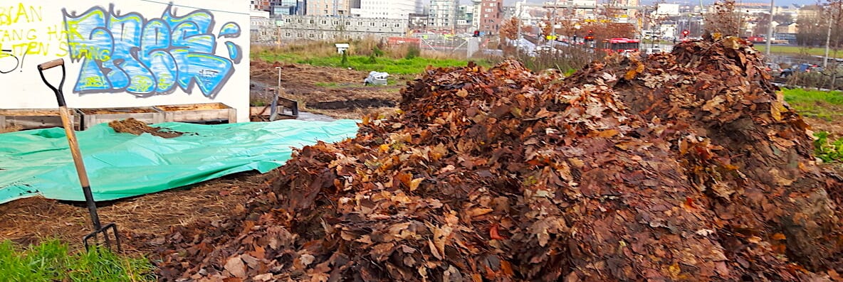 Tro om vi kunne få noen kubikk for å teste en løsning som kan gjøre det mulig å lage jord av løvet on-site i fremtiden? Herlig, egenprodusert jord eller jordforbedringsmateriale til å dyrke i året etter? Det kunne vi.