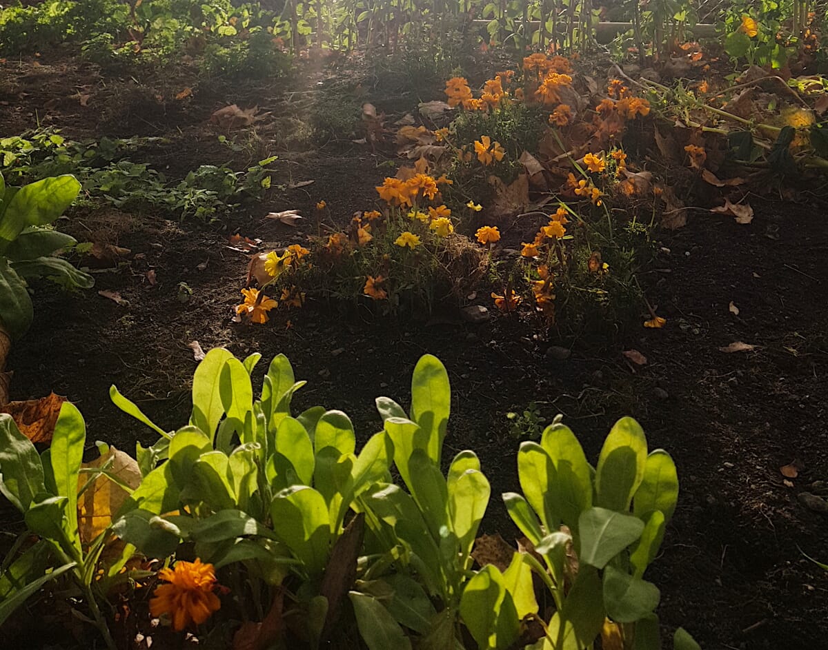 «Du er varmt velkommen inn i hagen, men vær så snill å la grønnsakene være i fred», står det på et skilt i et offentlig parkområde på østkanten i Oslo. Seksjon for kvalifisering og miljø i bydel Grünerløkka lager spiselig hage i Sofienbergparken, et stort grøntareal i bydelen, omkranset av store, gamle trær. Kjøkkenhagen er et pågående prosjekt og skal vokse videre, men den har gitt mange flotte grønnsaker i år også. Grønnkål og palmekål står fortsatt fin-fint i bedene, mens sommerblomster og andre grønnsaksplanter er i ferd med å takke for i år. Det er høst i parken. Trærne slipper bladene.