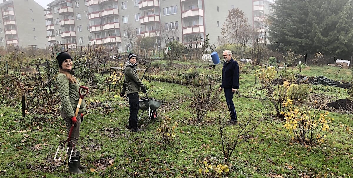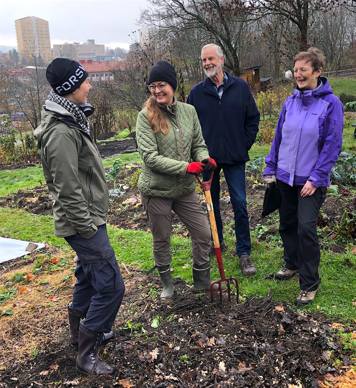 Mange av parsellinnehaverne har pakket sammen for sesongen, men ikke alle. Inger Eliassen er i ferd med å grave ned en stor bokashibøtte medbrakt hjemmefra, for å få en god start når våren kommer. På Annes parsell er det fortsatt mye å hente.