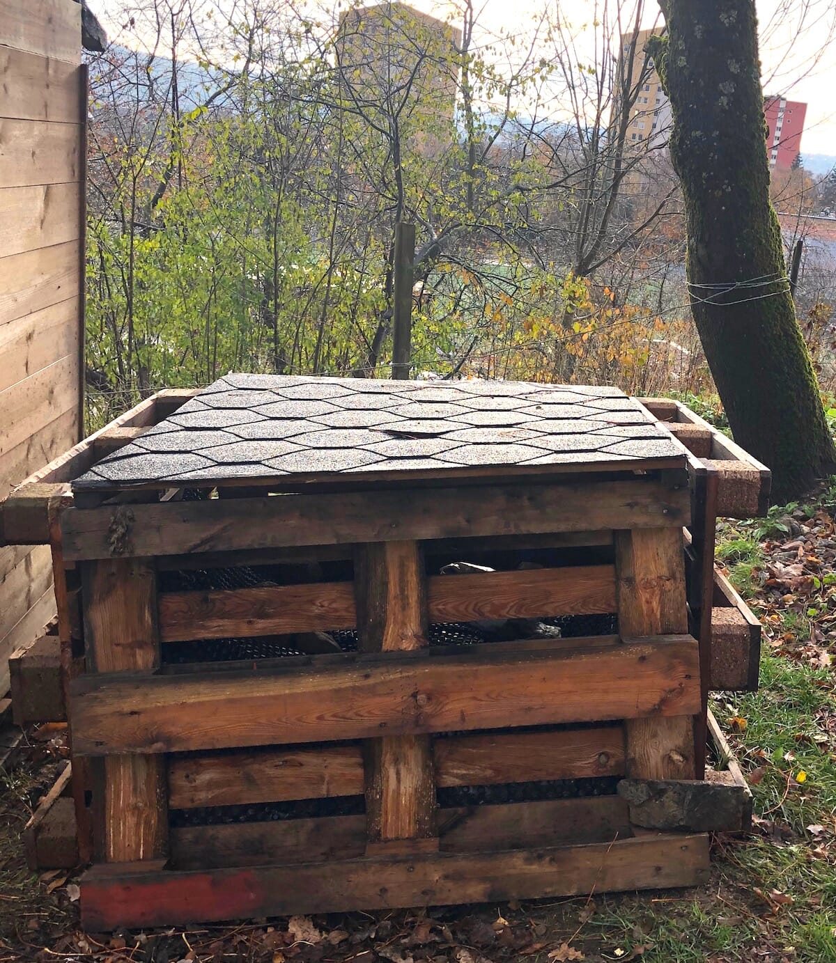 Kompostanlegget som ble bygget på dugnaden består av sorteringsbinger for ulike typer avfall, og en egen fermenteringskube. Den er satt sammen av paller og er kledd med svart bølgeplast innvendig. Tunge steiner holder plasten på plass, og på toppen ligger et kraftig lokk.