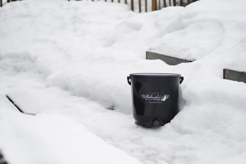 Full bokashibøtte SKAL alltid fermentere innendørs i to uker. Deretter kan den stå hvor som helst, og det gjør ingenting om innholdet fryser. Fermenteringen innebærer også en konservering, og full bøtte kan godt stå i inntil et år før den kommer i kontakt med jord. Og etter to uker, kan bokashien altså godt lagres ute selv om det er kaldt. Du kan lese mer om dette i denne artikkelen.