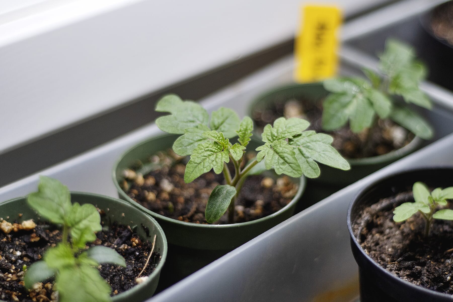Det finnes også andre lavtvoksende tomater, som du kan dyrke under vekstlys i vinduskarmen. Vi har sett flere som har suksess med sortene Lille Lise og Balcony for eksempel. Det viktigste er å velge en mikrobusk-tomat. Det finnes mange ulike varianter, men felles for dem alle er at de sjelden blir høyere enn 25-35 cm, og de trives fint med å dyrkes innendørs vinterstid. Vi pleier å velge Vilma, og har fortsatt noen frø igjen i posen, så for vår del blir det Vilma i år også.