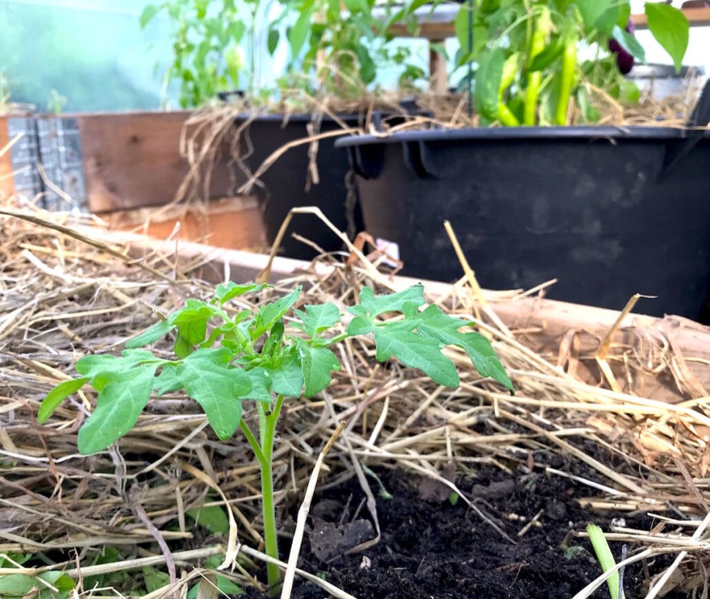 21. mai ble den store flyttedagen dette året. Da hadde «de vanlige» tomatene (sådd inne i februar og vokst seg store og litt ranglete under vekstlys i vinduskarmen) stått til avherding under fiberduk i drivhustunnelen noen døgn. De var klare til å plantes ut de også. Squash og agurker fra vinduskarmen ventet på å overta teltplassen under duk i tunnelen; og alle krukker og pallekarmer som skulle huse tomatene for resten av sesongen, var vel forberedt med bokashi eller hestemøkk og hønsehalm fra vinterens varmbenk i jorden, og gressklipp og fôr-ensilasje på toppen.