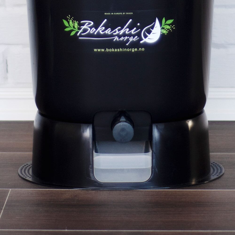 Svart basestasjon som passer til Bokashi Eko bøttene. Inneholder også tappekopp.