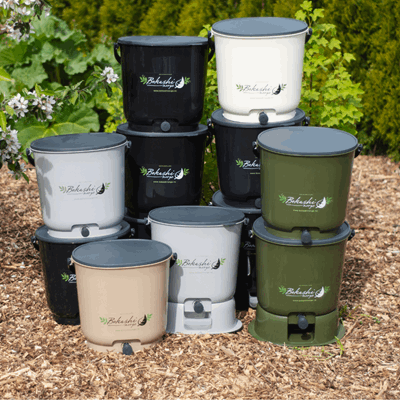 Bokashibøttene er produsert i Europa og laget av 100% resirkulert husholdningsplast.