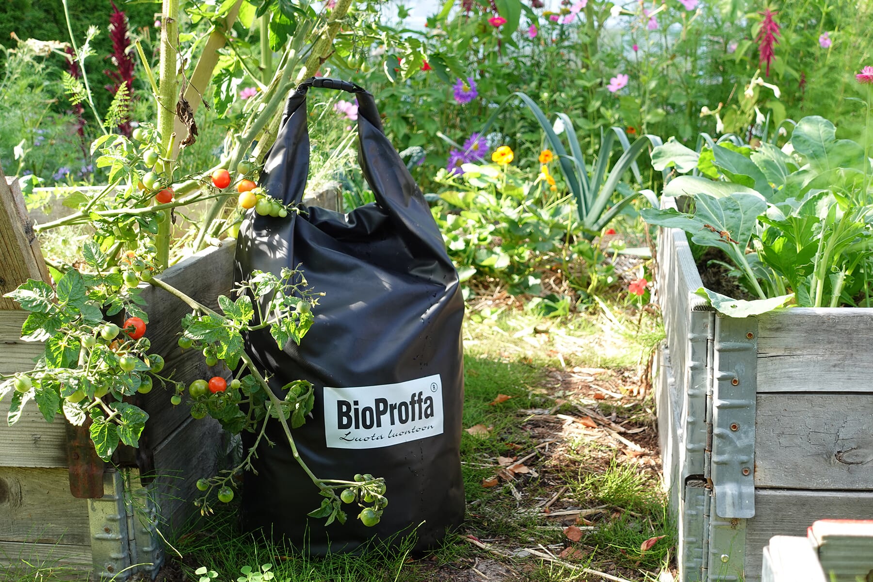 Selv pleier jeg hovedsakelig å bruke disse bokashisekkene. Vi har dem i 20, 40 og 60 liters størrelse. De er også laget av et slitesterkt materiale, så man ikke stikker hull på dem med kvist for eksempel. Også er det jo veldig praktisk at man bare kan brette dem sammen og legge dem vekk når de ikke er i bruk.