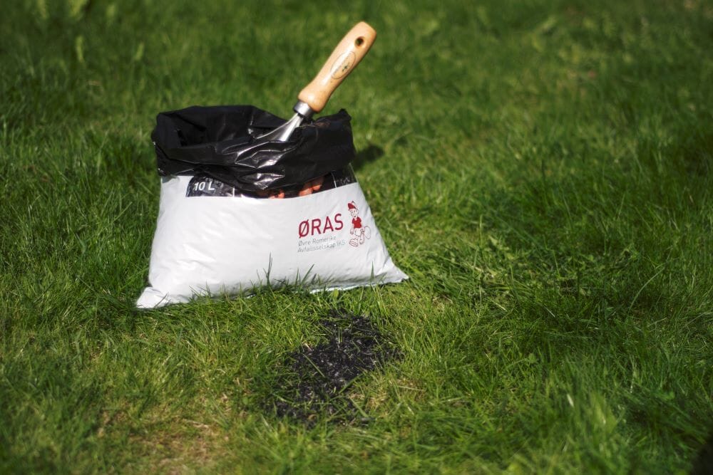 TIPS: For at du fortsatt skal kunne bruke hagen mens du venter på at kullet skal forsvinne ned i bakken, del plenen opp i soner. Da kan du ha kull på den ene delen én uke, og så neste del uka etter for eksempel. Veldig grisete blir det absolutt ikke, men litt sot under føttene må man forvente hvis man trår i gresset de første dagene etter påføring. Når kullet først har sunket ned i gressmatten, blir det værende der permanent.