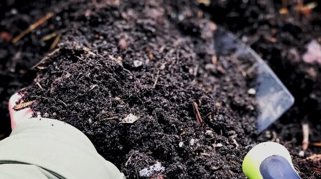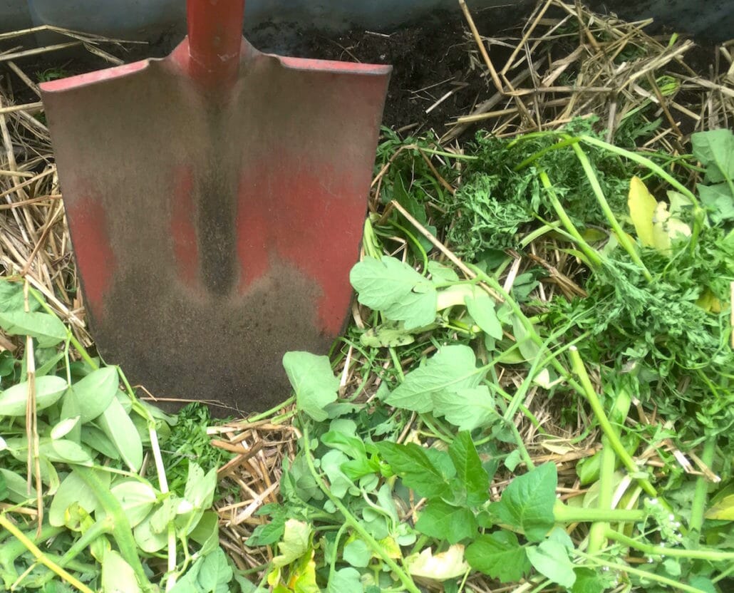 Når vi har høstet tom en pallekarm og vil så på ny, benytter vi anledningen til å tilføre jorden næring og organisk materiale. Nedenfra.