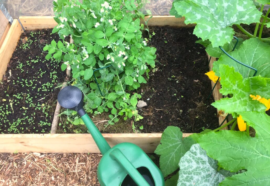 I juni sår vi gjerne erteskudd ute (ellers dyrker vi dem inne – hele vinteren); de vokser kjempefort og smaker herlig i salater, over risottoer, i pastaretter og som skivegrønt. Vi rekker en runde erteskudd selv om vi skal på ferie i juli.