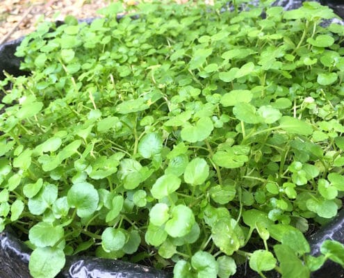 På forsommeren en gang går den vintersådde salaten i stokk. Da har vi gjerne nye småplanter stående i pluggbrett, klare til å plantes ut. Og så sår vi kanskje en runde til, enten rett på vekstplassen eller i pluggene vi har tømt for små-salat.