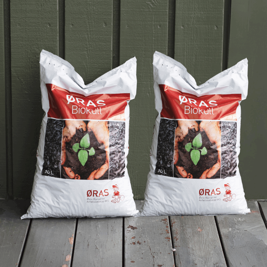 Til bruk i bokashi.  2 x 10 liter liter rent og bærekraftig biokull produsert i Norge.